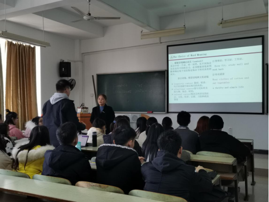 12月30日下午第5节课,英语教研室教师曾宇钧老师在A507举行了公开课,院领导杨永和以及来自英语教研室多名教师前往观摩。曾宇钧老师讲解的内容是翻译基础课程中的词语的翻译,她首先介绍了教学的目的及内容,她通过图片、视频、提问等多种方式,从词语的意义出发,通过译例的分析引导学生总结出词语的意义分类及翻译 同时,她还结合了时政新闻,联系到其背后的文化背景,在课堂上注入了思政元素。她态度认真,准备充分,内容熟悉,充分调动了学生的学习积极性。整个过程学生积极参与,课堂气氛热烈,教学效果良好课后,在教研室主任的主持下,对本次课进行点评,大家一致认为该公开课十分成功,课程设计非常完美,同时也在板书设计、例证的难度等方面提出了一些建设性意见。本次公开课为学院教师提供了一个相互交流和学习的平台,使大家在教学上得到了磨炼和提高,同时也充分展示了麻豆porn