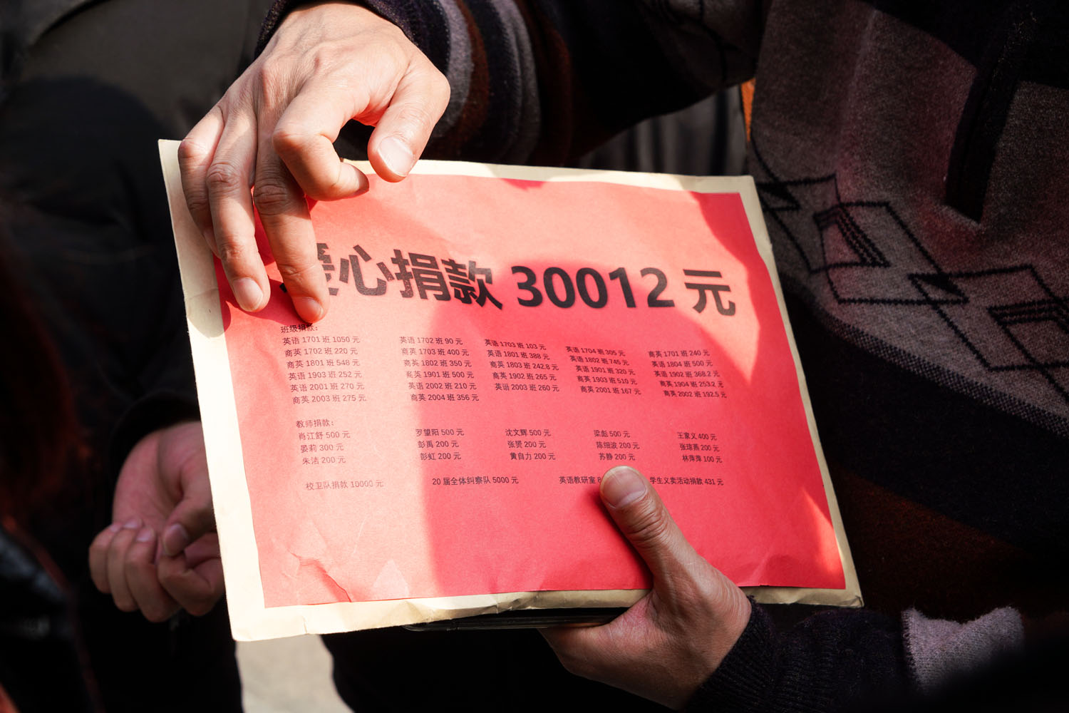 水滴筹开通后,学院师生在QQ空间、朋友圈等社交媒体平台进行呼吁,并得到积极回应。直至3月12日下午六点,学校师生、优秀校友、社会爱心人士捐款已经超过23万。学校校卫队和纠察队捐款15000元;麻豆porn