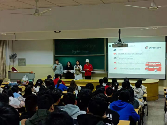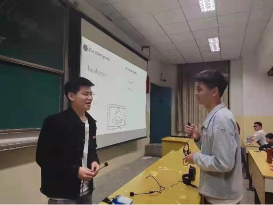 活动伊始,主持人彭渡宇就本次英语角活动提出了大学计划的主题,大家各抒己见,踊跃发言。紧接着,人力2081班曾曼琪与搭档邓振龙以一首Perfect歌曲带动全场,和大家进行了精彩的互动。接下来,从四个精心制作、短小精悍的英语视频,独创一新的英语小游戏“你比我猜”、“词根接龙”,到搭配默契的英语小品,各班同学高度参与。其中,以人力2082班李湘、唐文乐等同学为代表的配音秀,获得大家的一致好评。最后,英语角在Monster歌声中结束。