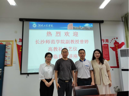 特邀长沙师范学院曾婷副教授和高教社省级课程思政分项负责人关艺仪老师在F119举行了高校教师省级教学竞赛专题讲座。院领导杨永和、罗胜杰率教研室主任、80后全体教师和本次思政教学比赛参赛团队成员参加,校教学监督与评估中心副主任施晓蓉,以及来自管理学院、经济学院、计算机学院、计算科学与电子学院部分教师应邀出席,讲座由罗胜杰教授负责主持。