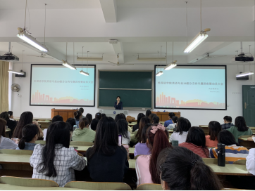 在培养优秀翻译人才上有三大优势,即优质的教师队伍、相关学科支撑和优质的省级实践教学基地,这些优势奠定了培养优秀翻译人才的基础。她还指出,除去学校给予的基础性支持外,要想在翻译方面有所成就,更需要学生提升自身的能力,不断提高自身科学文化素养。并希望同学们能够成为一个知识面广泛、专业知识扎实和具有多种能力的翻译人才。