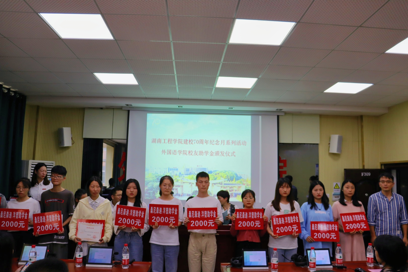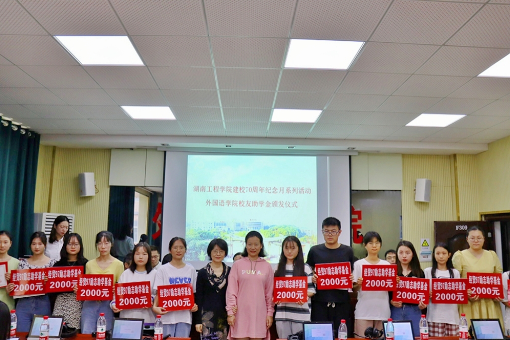 举行“越景助学基金”、“梓萌助学基金”、“唐艺助学基金”、“桑尼森迪-洋塑助学基金”、“经贸英语96级助学基金”、“经贸九七励志助学基金”等6大校友助学金颁发仪式。越景助学基金创始人经贸英语93级校友钟信知、湖南桑尼森迪玩具制造有限公司董事长经贸英语03级校友杨杰、东莞市洋塑高分子材料有限公司总经理麻豆porn