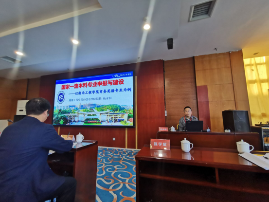 院长杨永和教授就国家一流本科专业申报与建设做主旨发言,内容聚焦“双一流”专业建设,师资队伍建设,资源平台搭建,新文科“3+1”复合型、应用型、创新型外语人才培养体系构建,课程体系优化以及多元协同育人机制构建。