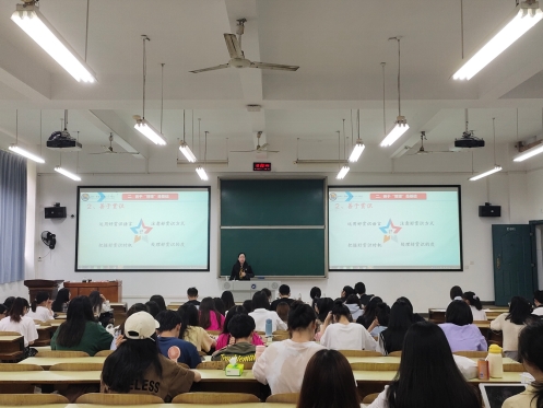本次讲座以“做一名快乐的人民教师”为主题,彭冬莲就“深入理解习近平总书记的讲话精神——教师是立教之本、兴教之源”“学校、社会和家庭三者相结合?”“当一名快乐型老师”三个板块展开,将她自身多年的管理工作经验及丰富的实践教学经历相结合,从“良好师德是前提”“善于‘管理’是基础”“高效课堂是关键”“做好‘三入’是保障”四方面分享了她的见解和经验。彭冬莲强调:一位教师的教学理念、授课态度和个人品质对学生有着深远的影响,因此,教师要始终筑牢一种情怀,坚守自己的职业道德、热爱自己的职业选择。她叮嘱未来要从事教育行业的学子,应始终保持一种精神,因为无私奉献是教育的特点、尽心尽力是教师的本职,要始终葆有一颗爱心,仁爱是每一位教师不可缺少的品质。