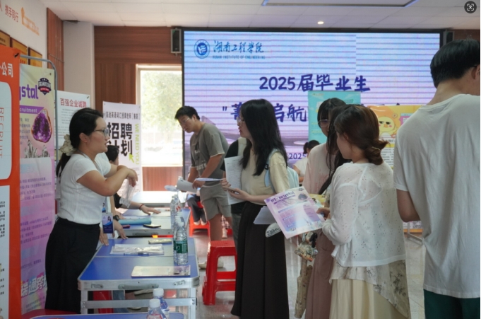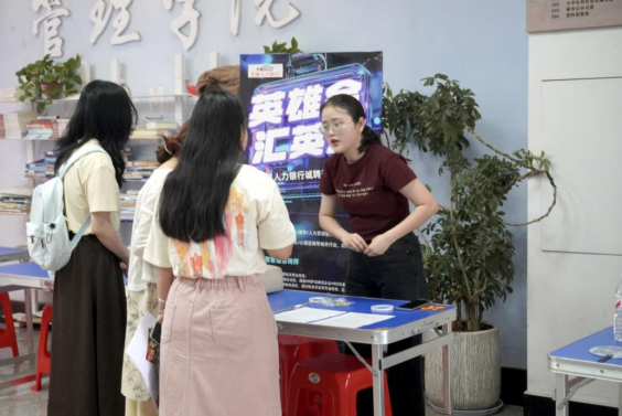 与商学院联合主办的2025届毕业生“菁英启航”供需见面会在教学楼F栋大厅火热启幕。