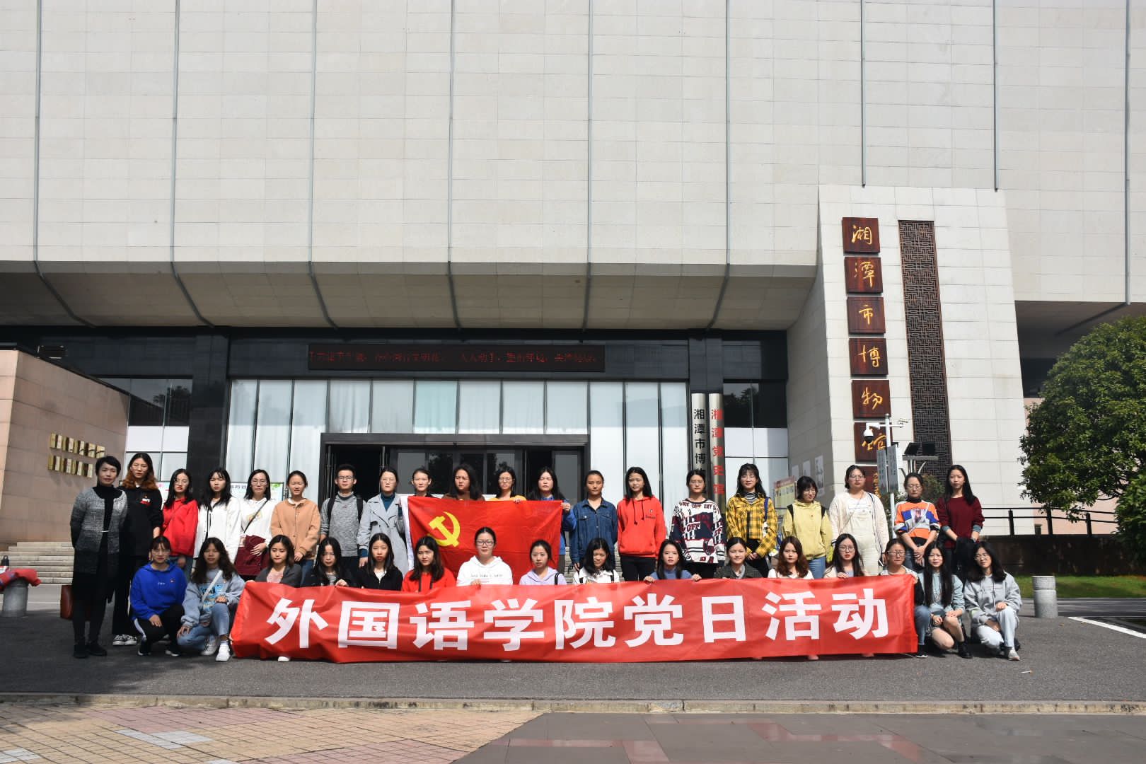 学生党支部全体党员在支部书记晏莉老师的带领下在湘潭“三馆”举行了10月份党日活动。