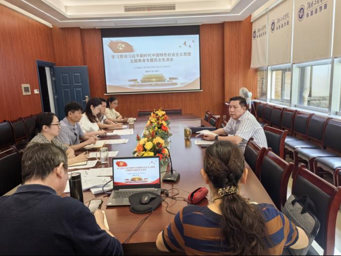 党总支在F119会议室召开学习贯彻习近平新时代中国特色社会主义思想主题教育专题民主生活会。会议聚焦学思想、强党性、重实践、建新功总要求,对照主题教育根本任务和具体目标,全面检视自身差距不足,结合典型案例进行深刻剖析,开展批评和自我批评,提出整改措施。校纪委书记齐路良到会指导,会议由党总支书记陈亚琼主持,非党员领导班子成员及专职组织员列席会议。