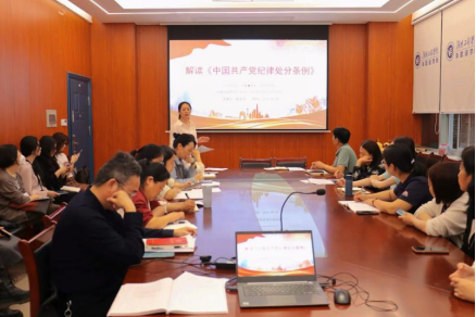 党总支组织开展学习新修订的《条例》专题学习,主讲人为学院党总支书记陈亚琼。