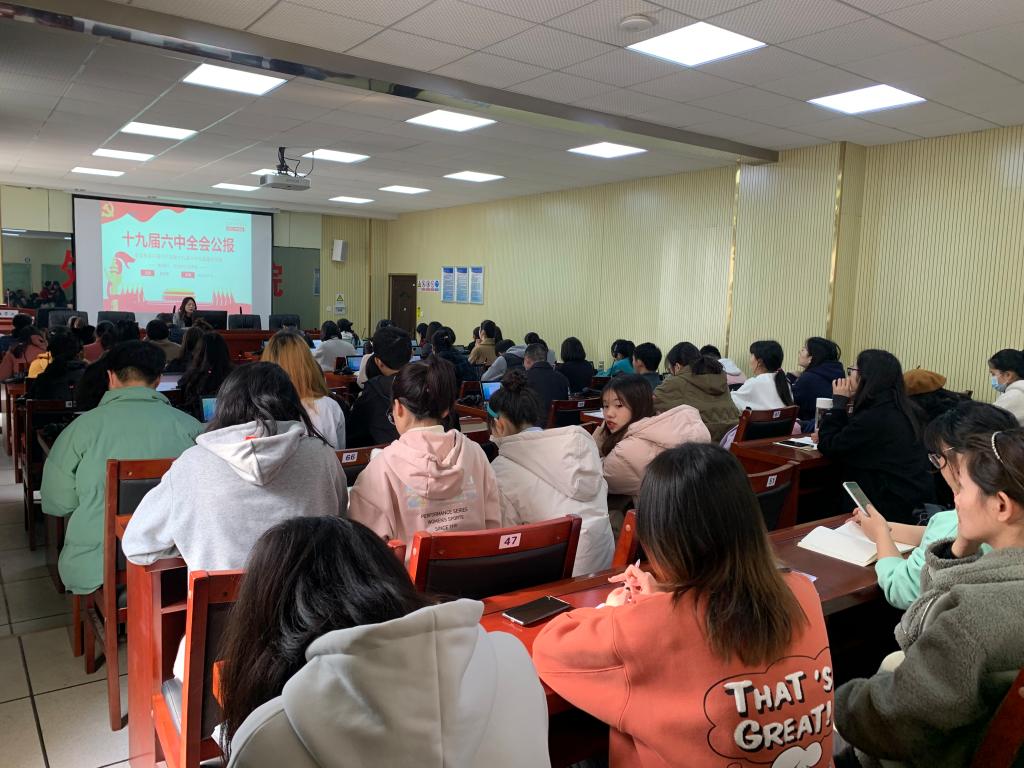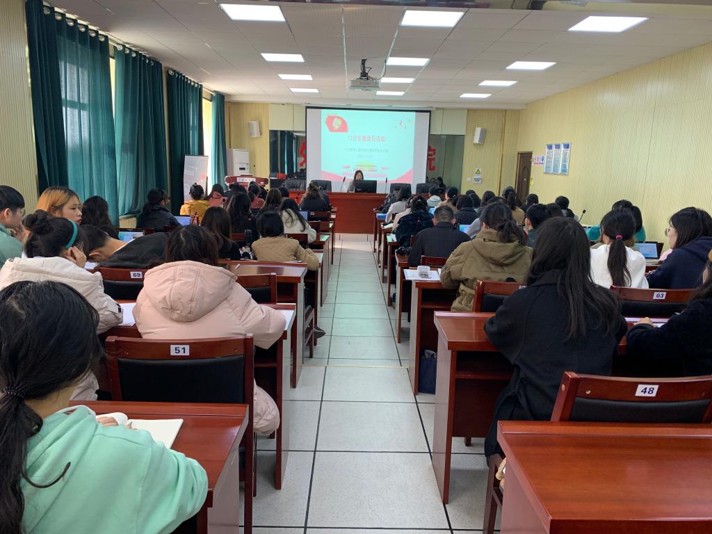 党总支部于12月7日下午在F309举行12月党日活动,党总支书记陈亚琼讲主题党课,带领全院教职工党员和学生党员共同学习十九届六中全会精神。