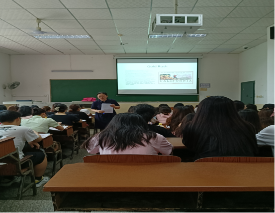 章老师的公开课以《新时代核心英语4》:Unit 6 Text B Too Loud to be True: The California Gold Rush为授课内容,授课对象为英语2081和2082的学生。本次课主要分为“Story Telling”“Background Information”“Text Analysis”和“Language Focus”四个环节。章老师首先通过一段卓别林关于淘金热的默剧导入主题;接着通过华人的加利福尼亚血泪史引导学生对淘金热下的一系列社会问题进行思考,同时通过与现在中国人民的幸福生活对比,引出了学生的民族自豪感和家国情怀,巧妙地融入了思政元素。随后,章老师就课文背景知识进行了介绍。再次,章老师对课文进行分析,层层推进,引导学生掌握课文主旨、层次结构及写作意图等。最后,对课文的语言重点进行了仔细分析。章老师准备充分,教学素材丰富,教学方法多样,将翻转课堂与信息化教学手段有机结合,运用自如。课堂上,教态自然亲切,讲述条理清晰,使用多种方式鼓励学生发言,师生积极互动,课堂气氛活跃,并在多处巧妙融入了“爱国”思政元素。