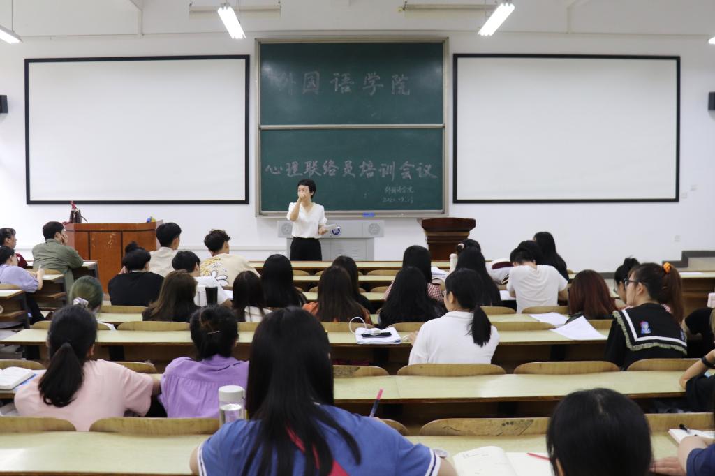 于9月16日中午12:30在教学楼D101召开了心理联络员培训会议,此次会议由学办主任晏莉老师担任主讲人,学院各班班干部及全体团学会成员都准时参加。