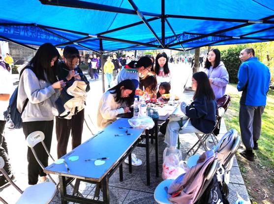心理部的同学们面带微笑,向来往的同学们热情的宣传和耐心讲解此次活动内容和要求,引导来往的各个学院下课的同学们能参与其中。一会儿功夫举办活动的帐篷下人群熙熙攘攘,热闹非凡,参与活动同学们都十分认真地把自己的心愿和烦恼通过写在便利贴上的形式粘贴在了“心灵树”上。