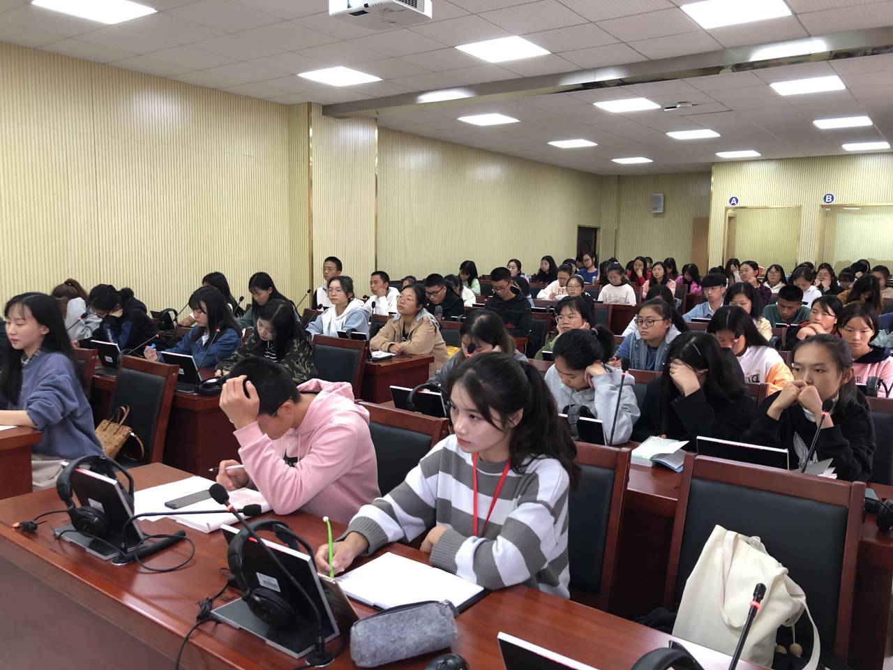 学办主任晏莉主讲,各班心理委员及寝室联络员准时参加了本次会议。