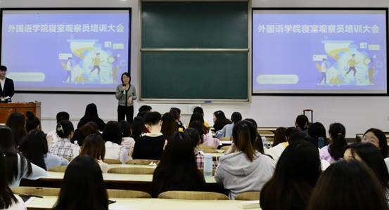 在D101开展了全体寝室观察培训大会,本次培训大会由晏莉老师主持,培训对象为全体寝室心理联络员。